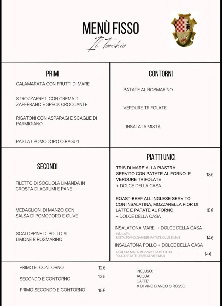 Menù fisso dal lunedì al venerdì a pranzo